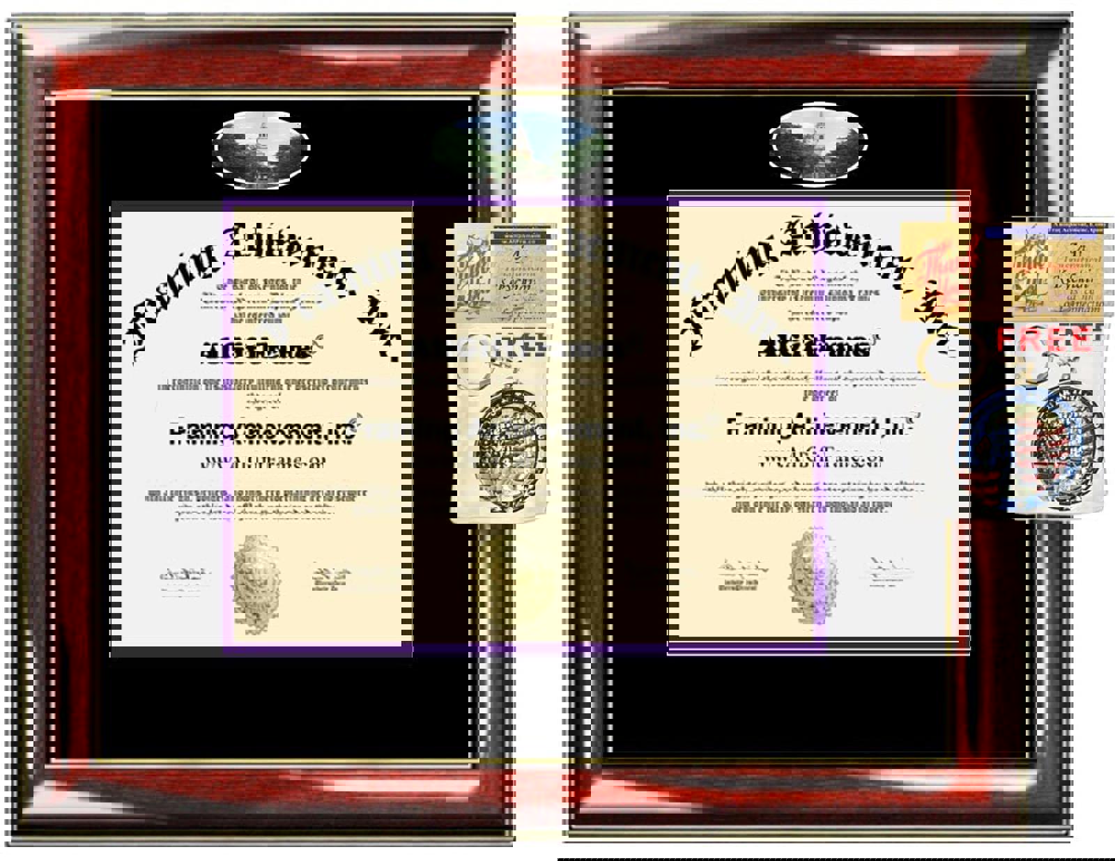 Affordable quality Texas Christian University degree frames and certificate frames using state-of-the-art quality control techniques to display achievement. Selling a variety of deluxe wood custom double personalized college university TCU diploma frames with campus picture. All certificate frames are custom made to fit your diploma document sizes. Wholesaler of custom degree frames and certificate frames with premium wood mouldings and plaque frames. These engraved university diploma plaques will display and enhance your success and will make a great wall decor.