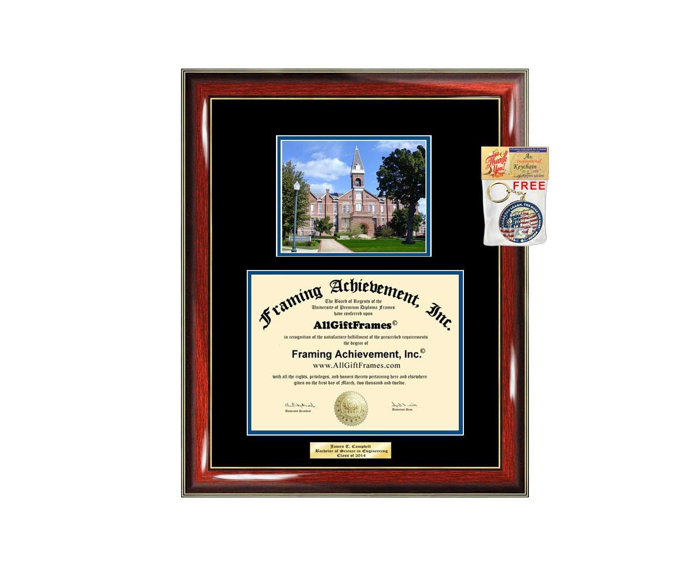 • Includes backboard, pH balance matboards help preserve and protect your diploma, glass and hanging hardware. Includes school college campus photo and shipped via Fedex if within 48 states excluding (HI, AK, APO) Ready to Hang!