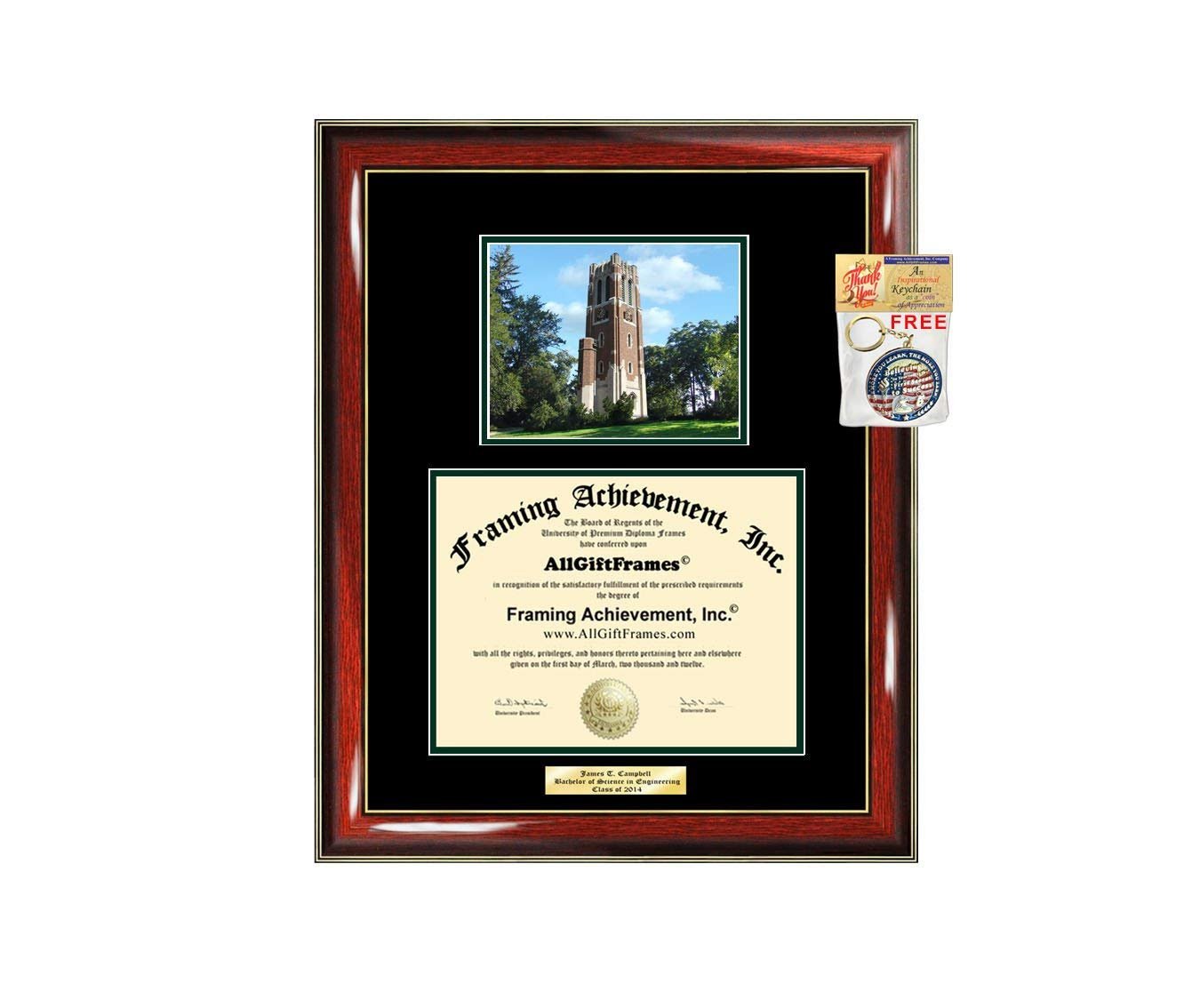 - Double mattedted with Top matted (Black) Inner matted (Dark Green) which compliments the mahogany frame and PH Balance mattedboard to conserve diploma from yellowing. Complimentary Inspirational Quotes Gold Keychain Gift by AllGiftFrames© Framing Achievement Inc.