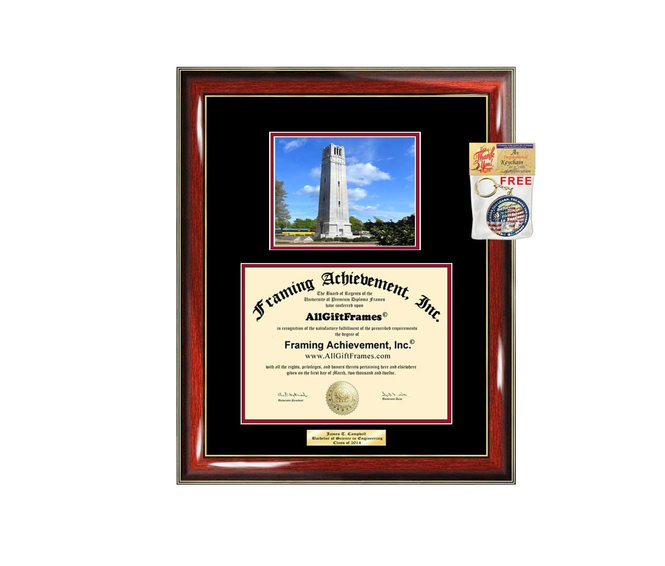 - NCSU Personalized Engraved Plate Graduation Diploma Frame Campus Photo Picture Glossy Prestige Mahogany with Gold Accents Wood Moulding.