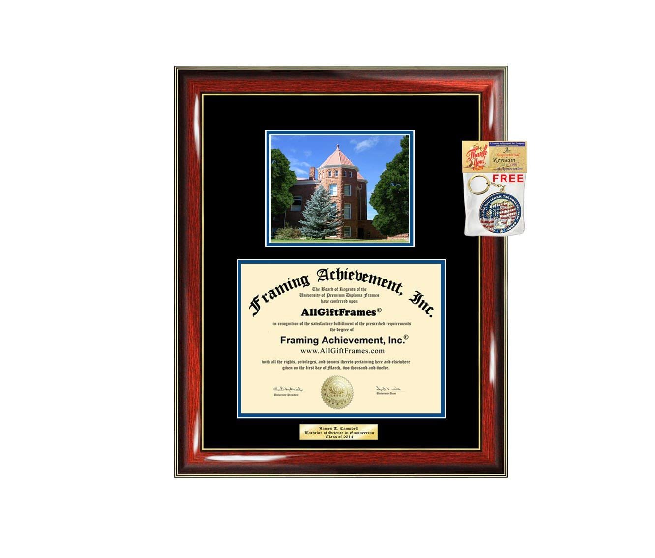• Includes backboard, pH balance matboards help preserve and protect your diploma, glass and hanging hardware. Includes school college campus photo and shipped via Fedex if within 48 states excluding (HI, AK, APO) Ready to Hang!