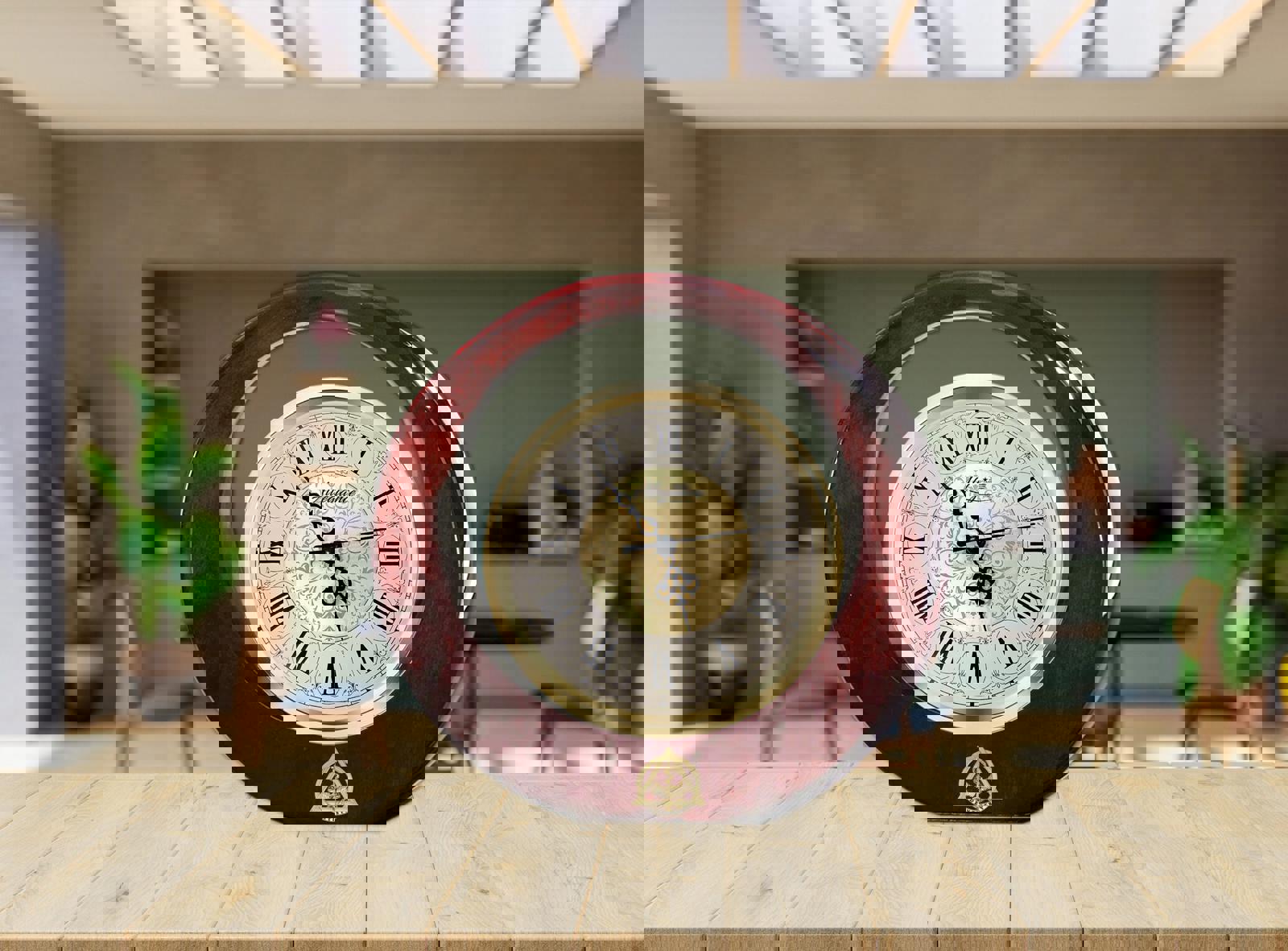♥ Beautiful table top mantel eclipse round shape cherry wood clock design