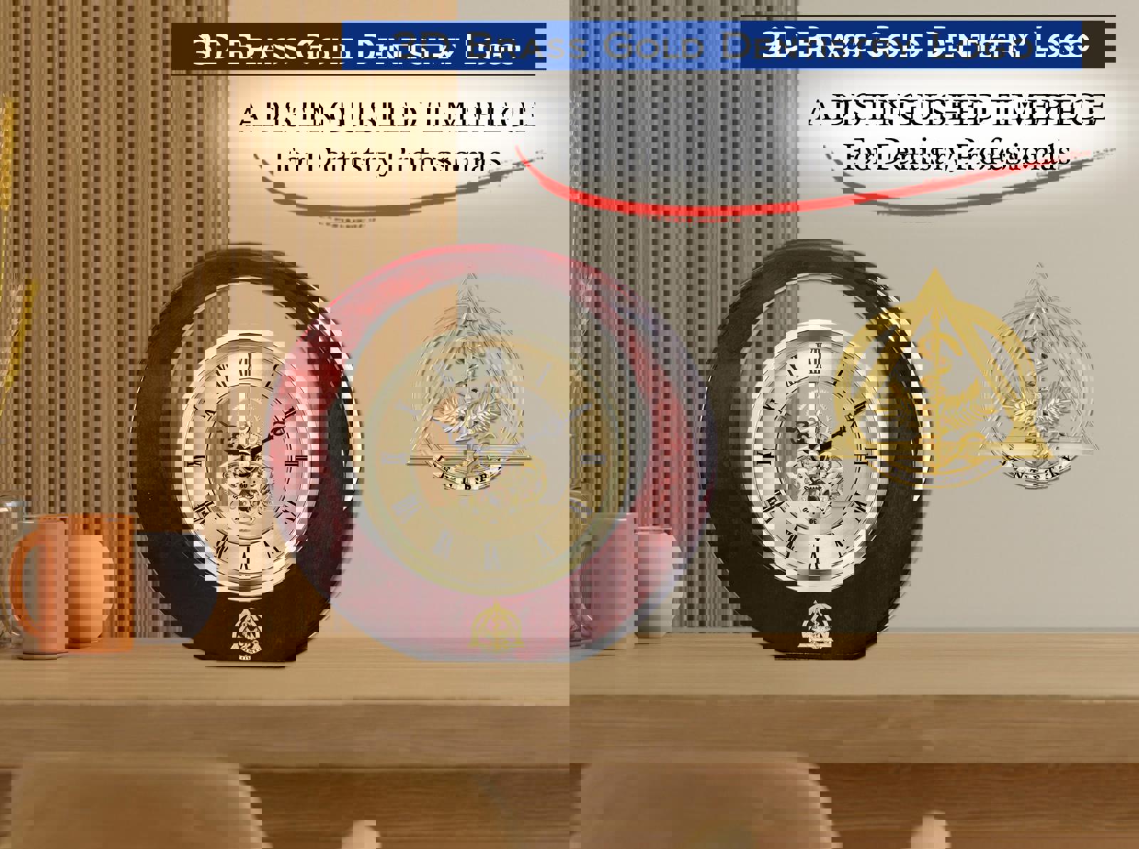Experience the true joy of admiration and congratulation requires taking a moment to reflect and recognize achievements in the workplace or simply a dental school graduation gift for a university or college graduate. DDS (Doctor of Dental Surgery) and DMD (Doctor of Medicine in Dentistry or Doctor of Dental Medicine) will admire this functional congratulation gift of time. The elegant inspiration award Marquee desk clock accommodates a 3D gold metal dentistry emblem, a moving gear clock dial and a carved ridges hemispherical shape cherry polished wood casing with a spectacular abstract bold design. Gold moving mechanical gear quartz desk clock is a unique dentistry gift of an unparalleled design. Timeless wood design work design together to create a truly successful law award as dentist thank you or dental hygienist appreciation gifts. A unique table clock gift idea is destined to outshine all other recognition years of service award and thank you present.