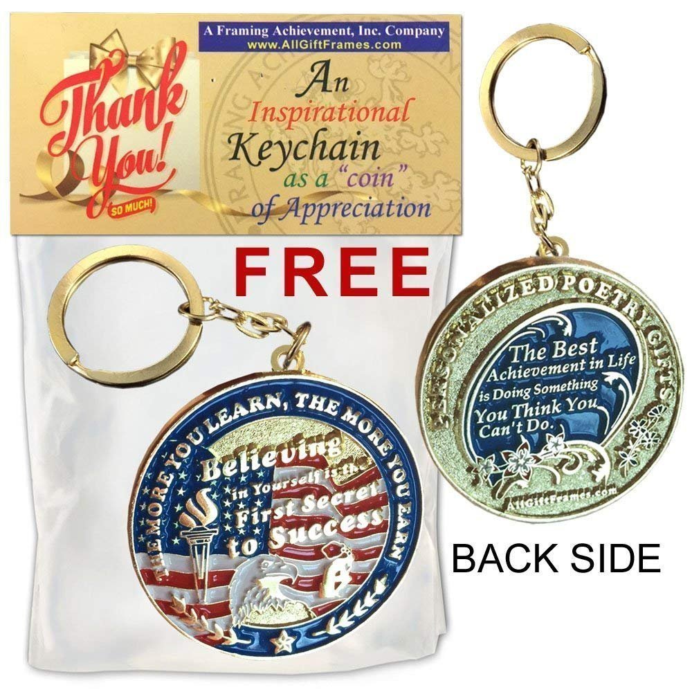 * Personalization up to 3 lines on a Silver or Gold Engraving Plate in Old English Font (Amazon Prohibits School Names due to Copyright). Complimentary Inspirational Quotes Gold Keychain Gift by AllGiftFrames Framing Achievement Inc. and Single Black Mat PH Balance to conserve diploma from yellowing