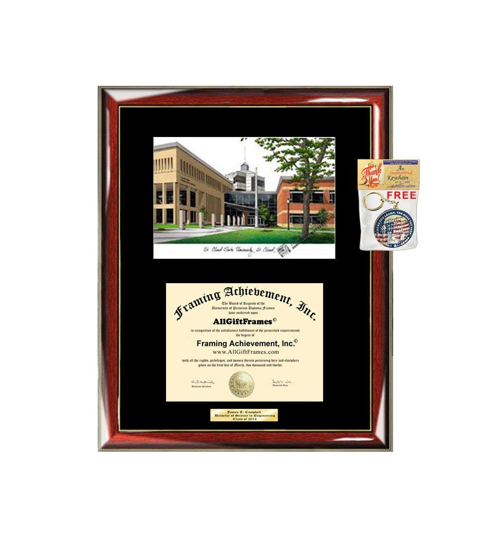 - St Cloud State University Diploma Frame Lithograph SCSU Degree College Framing Graduation Certificate Plaque Single Black Matted University Diploma Frames Engrave Custom Degree Framing