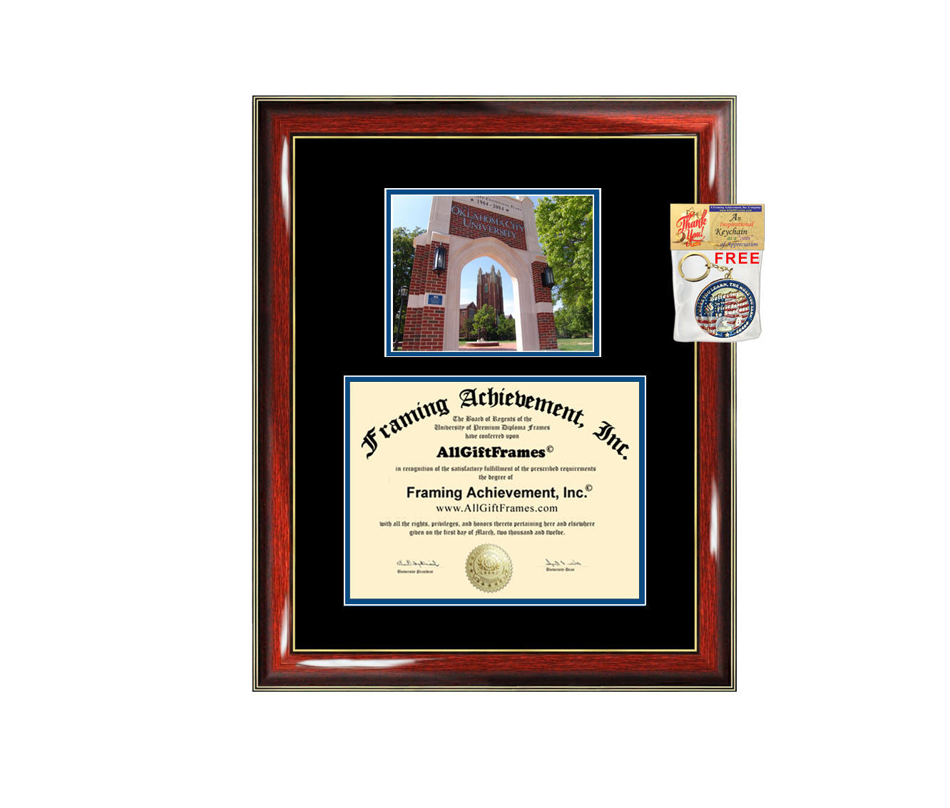 Dazzling. Elegance and Creative, AllGiftFrames.com manufacture high quality university diploma document university frames and certificate frames using state-of-the-art quality control techniques to showcase your achievements. We offer a variety of high-end wood custom college diploma frames. All certificate college OCU frames are custom made to fit your diploma sizes. Supplier of custom degree frames and certificate frames with premium wood mouldings and frames. These university Oklahoma City University diploma plaques will display and enhance your success and will make a great wall decor.