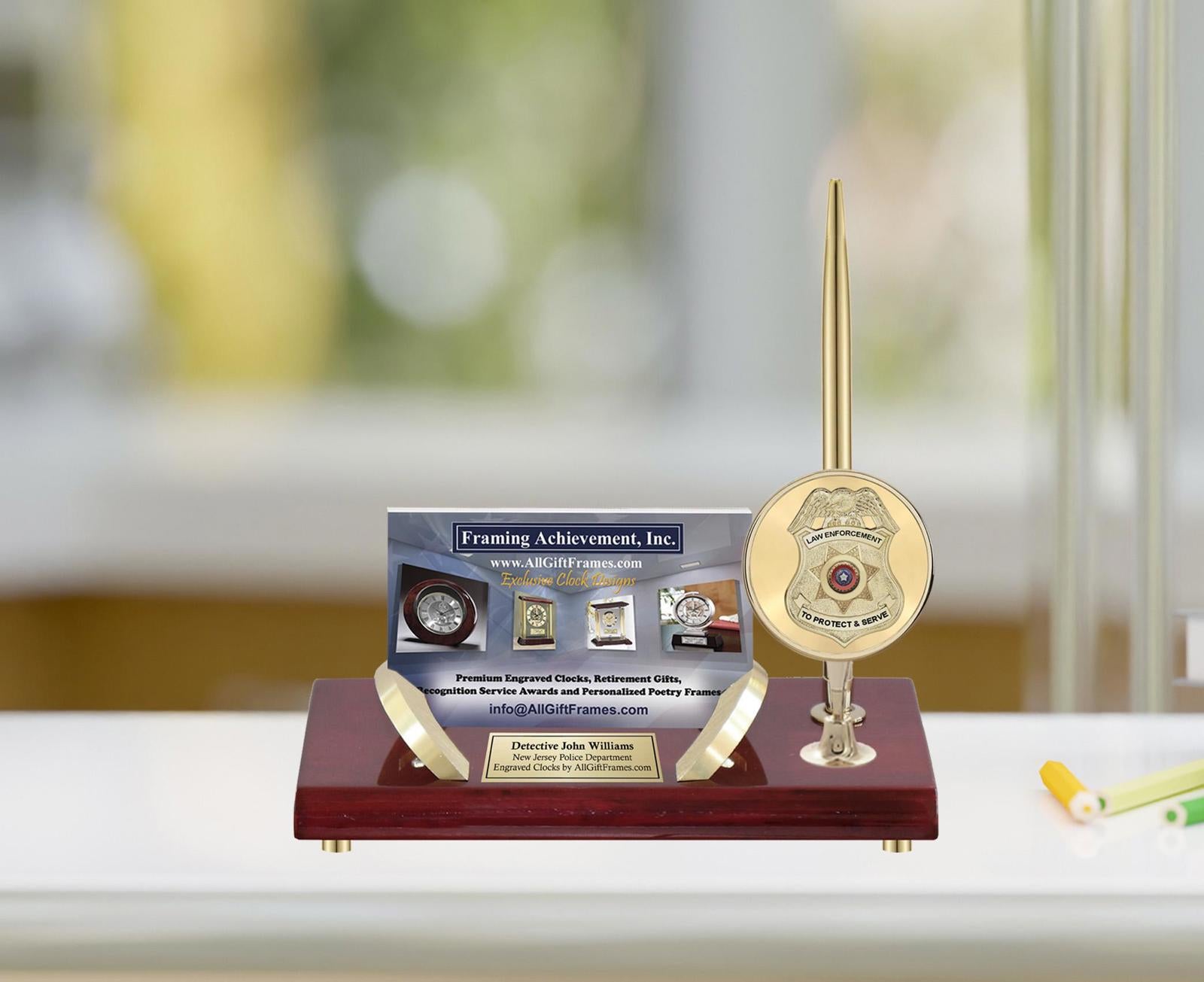 ♥ Business card holder with single pen, engraved name plate plaque and law enforcement logo
