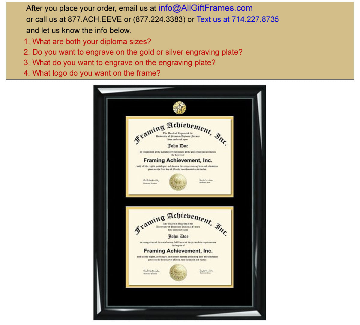All double certificate frames are college frame for two college degrees and double university majors. Offering discount dual university diploma frames with two degree document frames.
