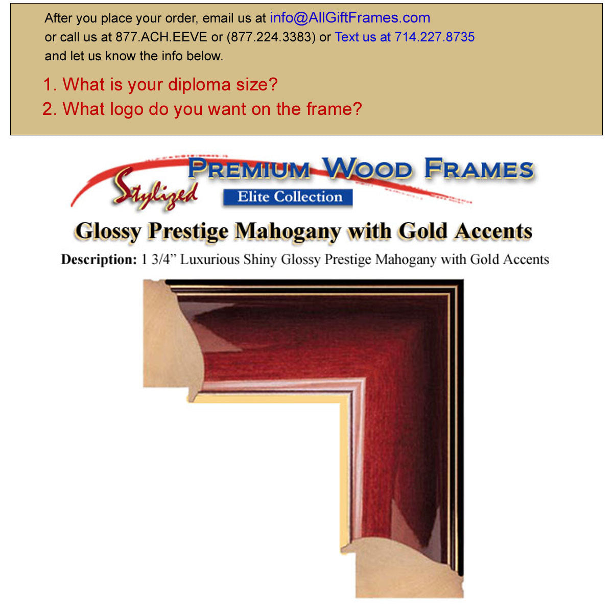♥ High-end Premium Glossy Prestige Mahogany with Gold Accents Wood Moulding Frame