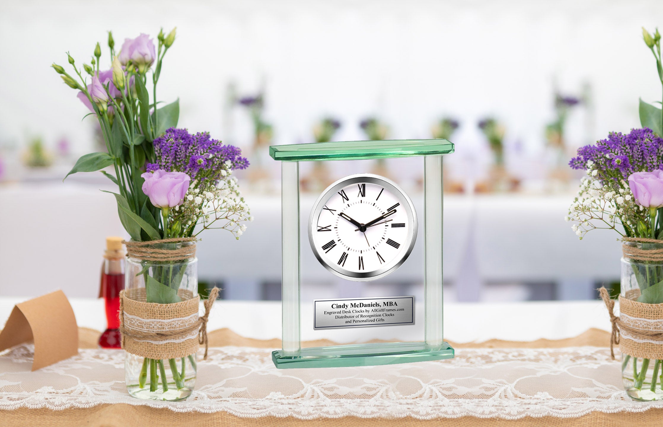 Personalized Retirement Gift Anniversary Birthday Wedding Recognition Service Award Boss Coworker Retiree. Personalized desk glass clock with silver engraving plate.This beautiful engrave desk clock makes a unique retirement, employee recognition, wedding, anniversary or graduation gift present. A unique table desk clock gift idea for coworker, employee, boss, girlfriend, boyfriend, wife, husband, etc.... Personalized clock gifts by Framing Achievement, Inc. creation. Rating high on style and elegance, Framing Achievement's personalized poem photo gifts are the first choice in premium poetry presents for Anniversary, Birthdays, Weddings, Retirement, Graduation and many more occasions. Unique Anniversary Wedding Gift, Corporate Business Employee Service Retirement Appreciation Award and Birthday Graduation Gift. Congratulation engraved desk clock with distinction.
