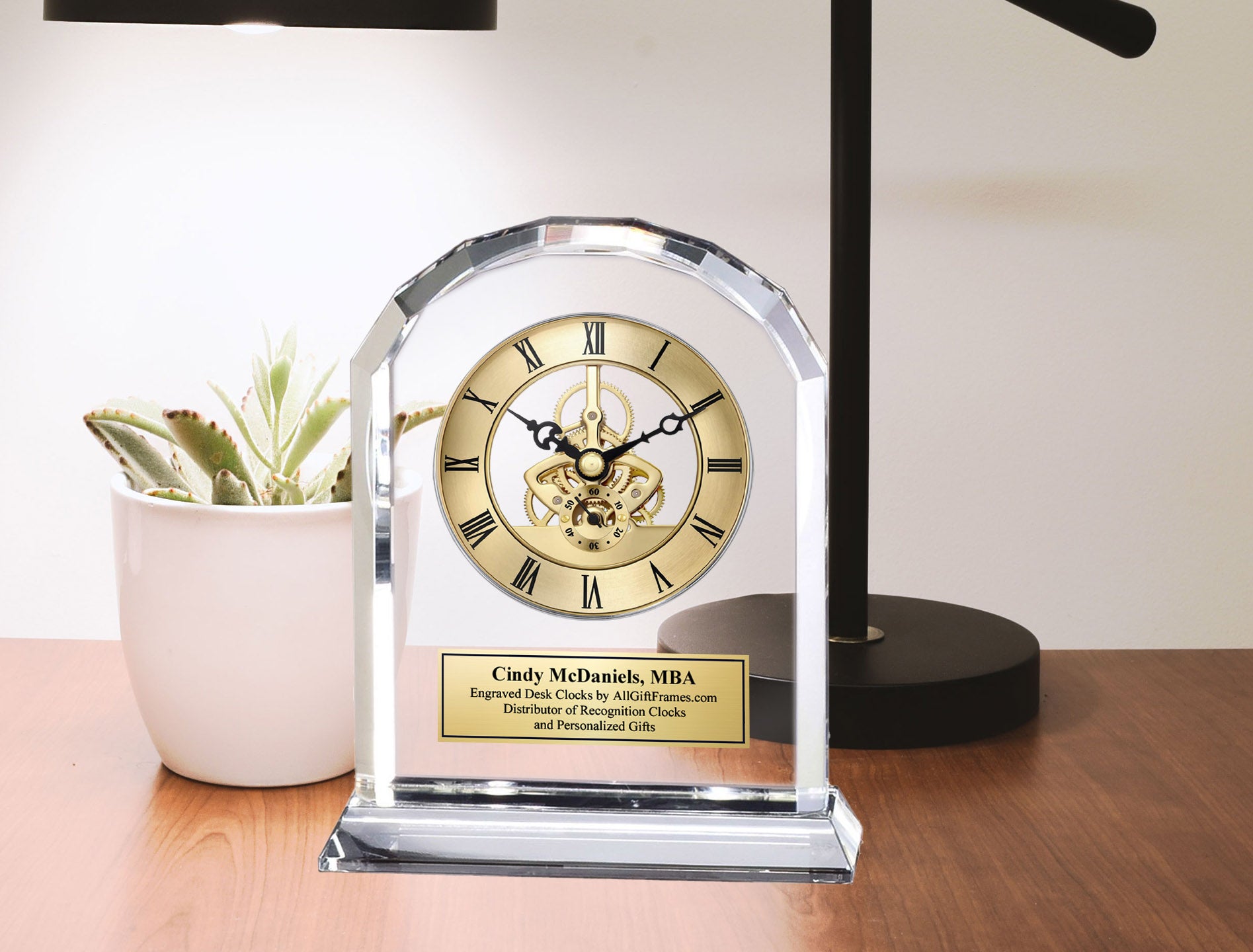 Unique Anniversary Wedding Gift, Corporate Business Employee Service Retirement Appreciation Award and Birthday Graduation Gift. Let our personalized engraved desk clock gift products imagination wander and explore the possibilities that you can create with a custom sentimental meaningful message in our elegant clock gifts.