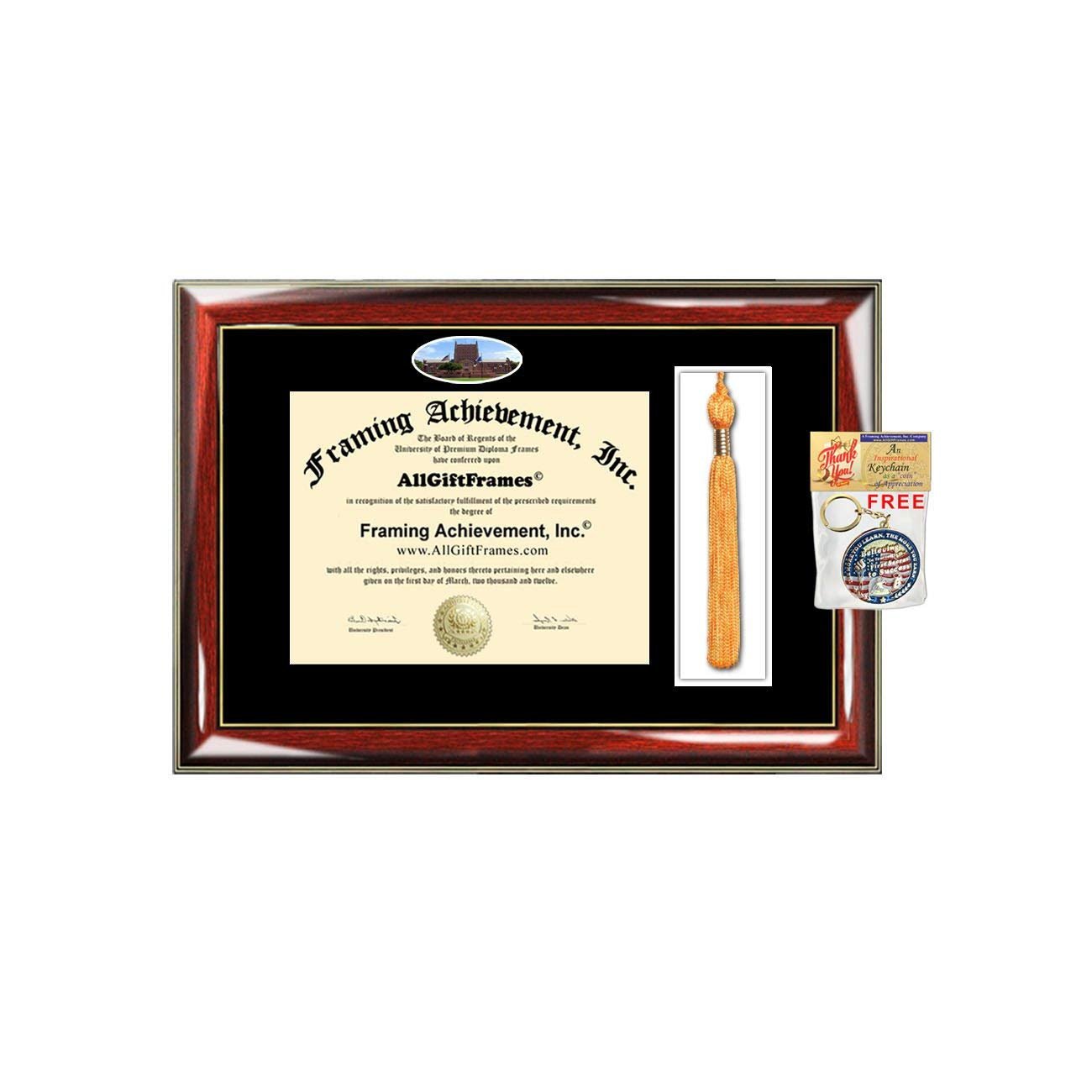 With our tassel diploma case holder University of Tulsa diploma frame with campus photo, the sentimental value are endless. Our variety of graduation degree plaques truly encourages you to create the perfect gift for treasured and priceless degrees and certificates. The certificate frame and college university frame includes a small campus photo image approximately 1.5H x 3W. If you have any questions email us through AchievementGifts (Amazon) or AllGiftFrames Includes Complimentary Inspirational Quotes Gold Keychain Gift by AllGiftFrames© These graduation diploma frames can display professional certifications and degrees with a campus image. We acknowledge and congratulate high school, college or trade school graduates by providing University of Tulsa diploma framing tassel box service to the alumni. Share the joy of giving and expressing congratulations to the graduate by framing a diploma in an elegant University of Tulsa tassel holder degree frame. These premier Tulsa diploma tassel holder boxed frames with campus image picture are unique graduation gifts. Manufacture of high quality premium personalized custom diploma frames and certificate plaques. Whether you're looking for elegant graduation diploma frame gift idea, personalized high school or college graduate gift, law school graduate gift or simply personalize graduation frames, we can help with the customizing gift. Let us be your custom Tulsa diploma framing gift shop for a Bachelor, Masters, MBA, Doctorate, PhD, Juris Doctor or medical degree. All certificate college frames are custom made to fit your diploma sizes. Vast selection of college degree frames to fit a bachelor, masters, mba, doctorate, juris doctor, phd, nursing etc.. degrees at cheap prices.