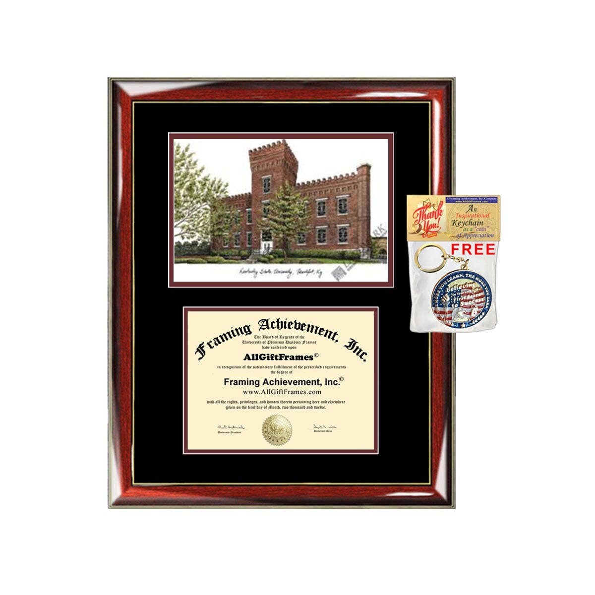 Dazzling. Elegance and Creative, AllGiftFrames manufacture high quality university diploma document Kentucky State University frames and certificate frames using state-of-the-art quality control techniques to showcase your achievements. We offer a variety of high-end wood custom college diploma frames. All certificate KSU lithograph diploma frames are custom made to fit your diploma sizes. Supplier of custom degree frames and certificate frames with premium wood mouldings and frames. These college diploma plaques will display and enhance your success and will make a great wall decor.